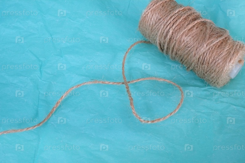 Концептуальный плакат, баннер, поздравительная открытка со шнуром, изолированная на бирюзовом фоне