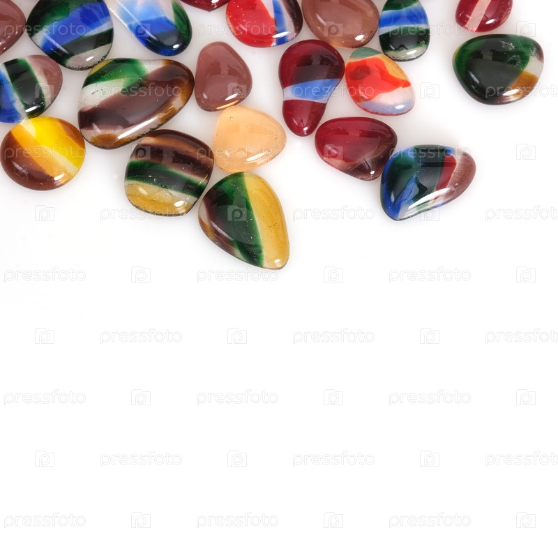 Стеклянные яркие цветные элементы, изолированные на белом фоне, для создания плакатов / баннеров / открыток