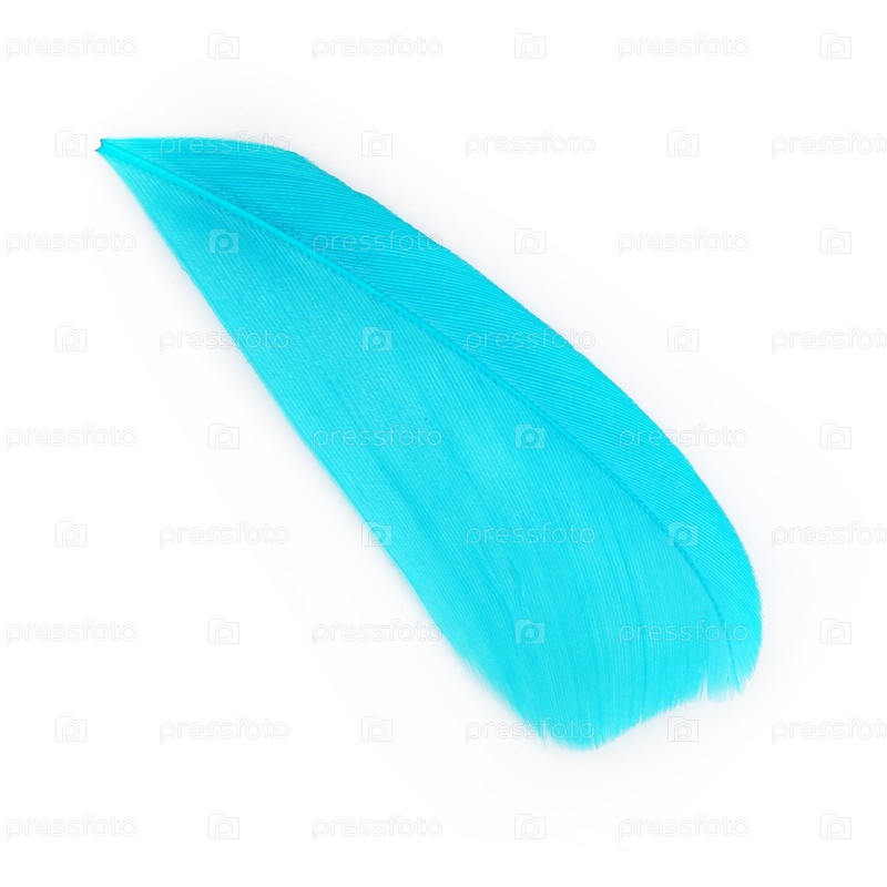 Яркое разноцветное птичье перо, изолированное на белом фоне