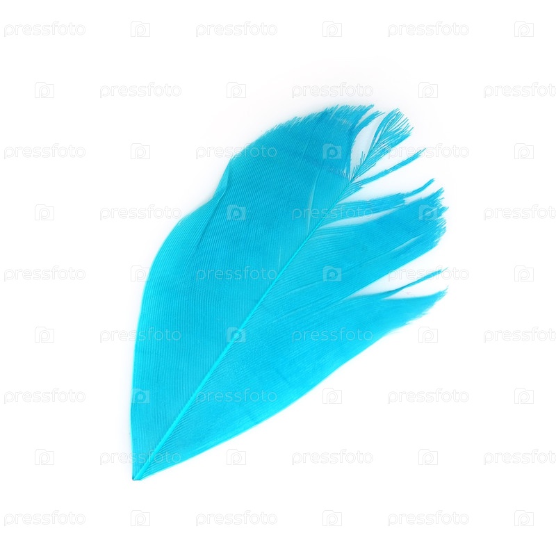 Яркое разноцветное птичье перо, изолированное на белом фоне