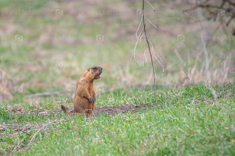Маленький сурок вылез из норы и свистит