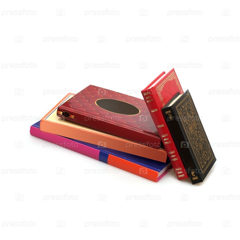 Стопка книг в цветных обложках с белыми листами, изолированных на белом фоне