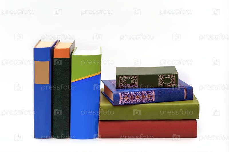 Стопка книг в цветных обложках с белыми листами, изолированных на белом фоне