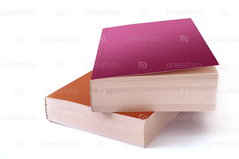Стопка книг в цветных обложках с белыми листами, изолированных на белом фоне