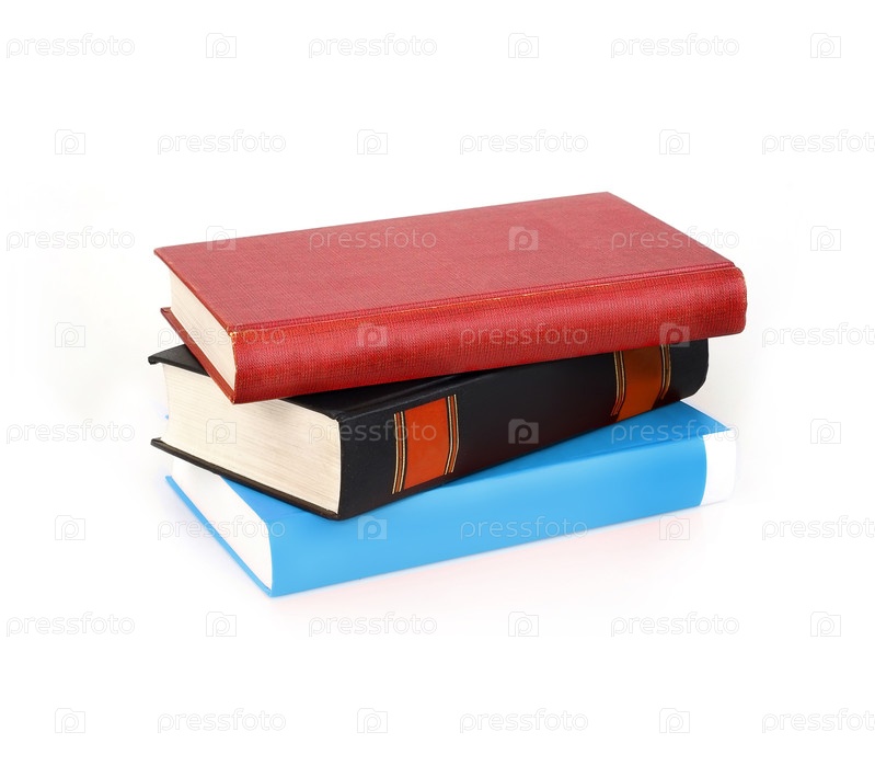 Стопка книг в разноцветных обложках, изолированная на белом фоне