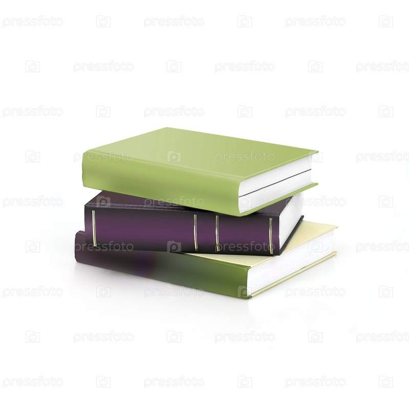 Стопка книг в цветных обложках с белыми листами, изолированных на белом фоне