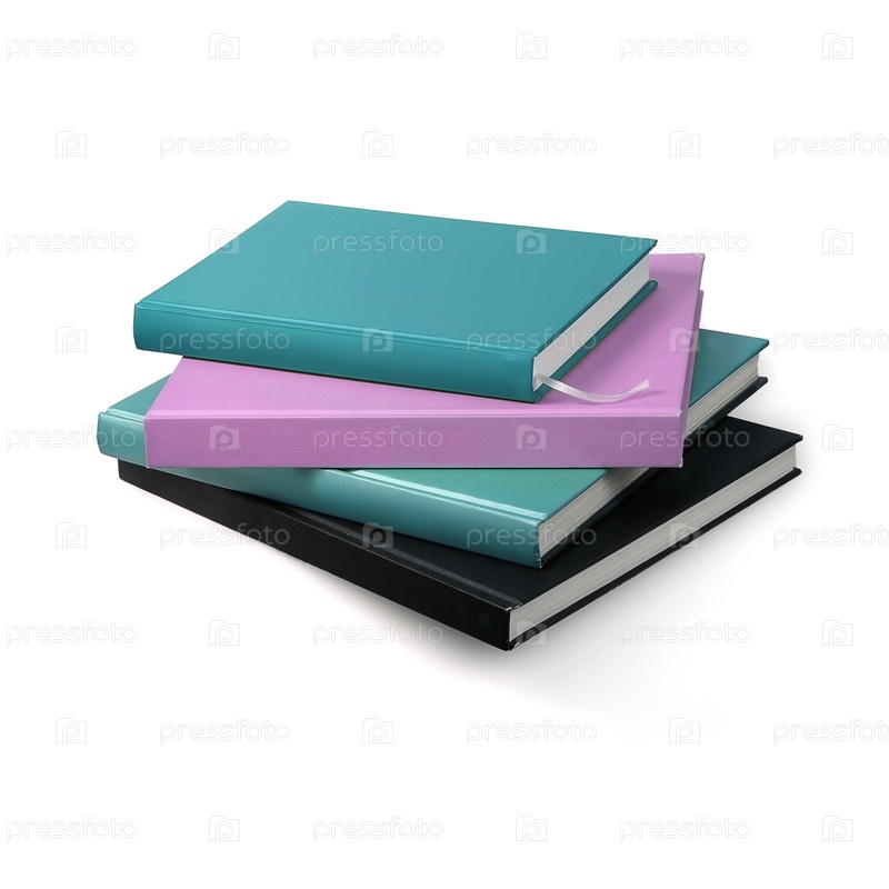 Стопка книг в цветных обложках с белыми листами, изолированных на белом фоне