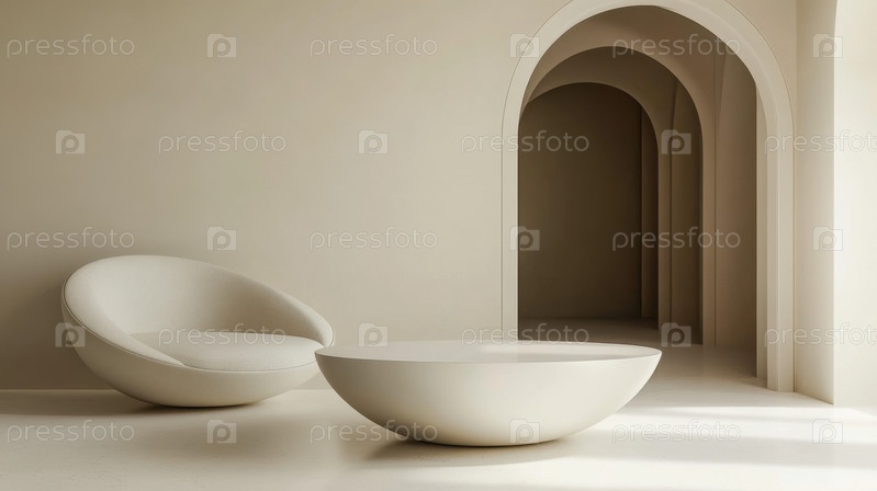 Современный минималистский дизайн интерьера с элегантными изгибами и нейтральными тонами