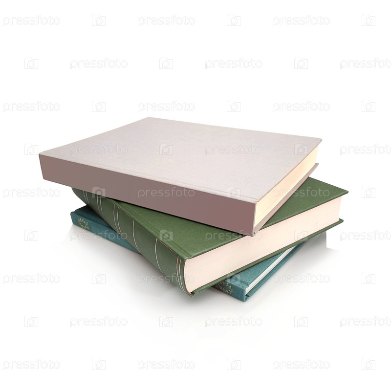Стопка книг в цветных обложках с белыми листами, изолированных на белом фоне