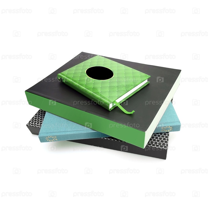 Стопка книг в цветных обложках с белыми листами, изолированных на белом фоне