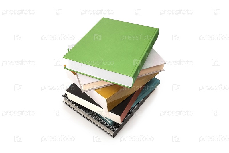 Стопка книг в цветных обложках с белыми листами, изолированных на белом фоне