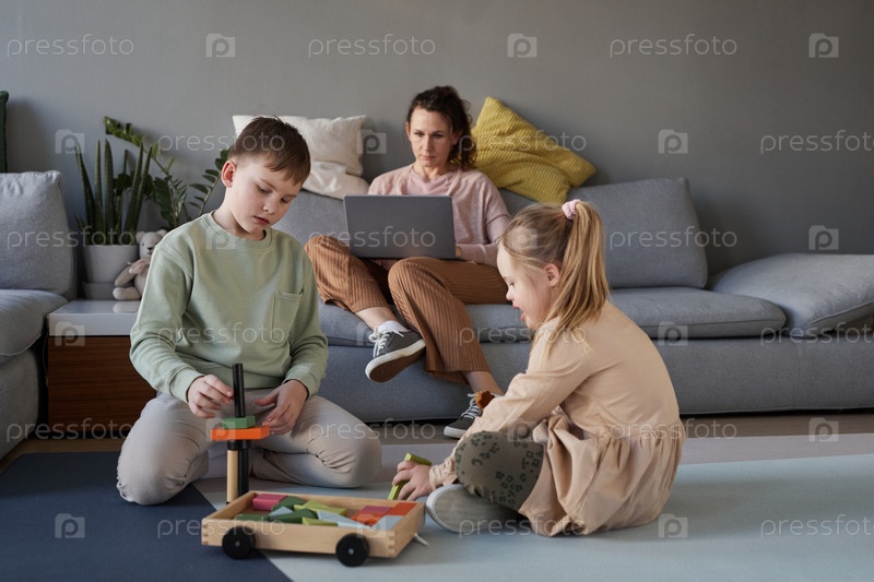 Брат и сестра играют вместе с игрушками