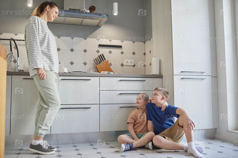 Одинокая мать с двумя детьми дома