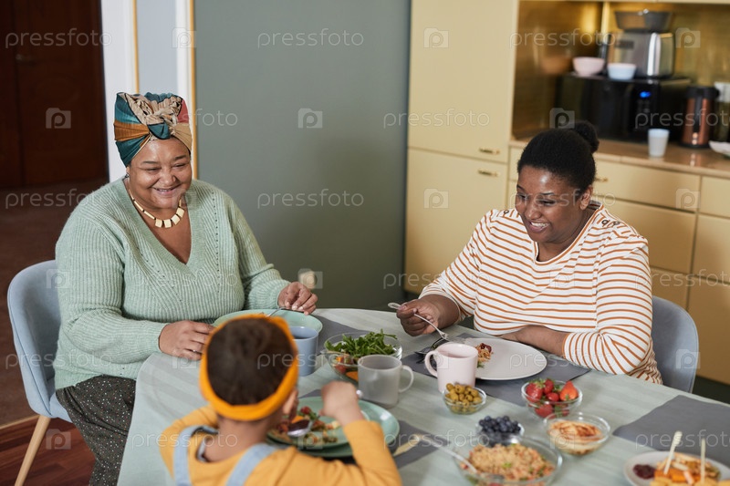 Счастливая афроамериканская семья за обеденным столом