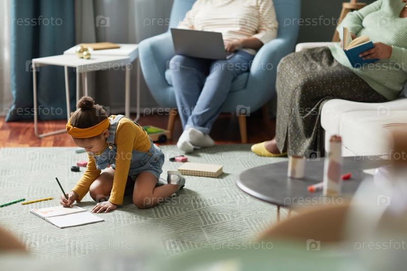 Афроамериканская девушка играет на полу