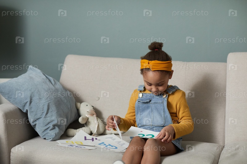 Маленькая девочка учит алфавит дома
