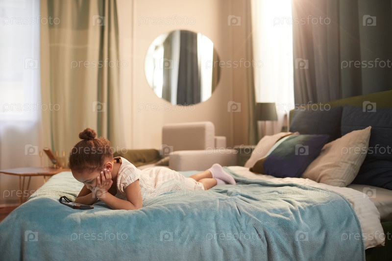 Маленькая афроамериканская девочка, лежащая на кровати