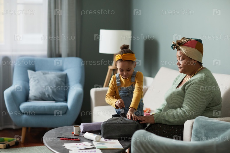 Маленькая девочка собирает рюкзак на первый день в школе
