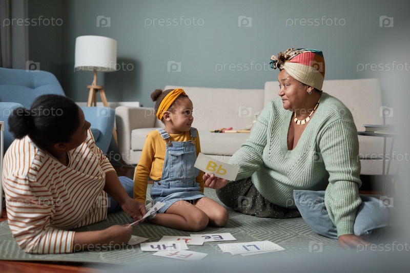 Африканская американская семья помогает девочке изучать письма