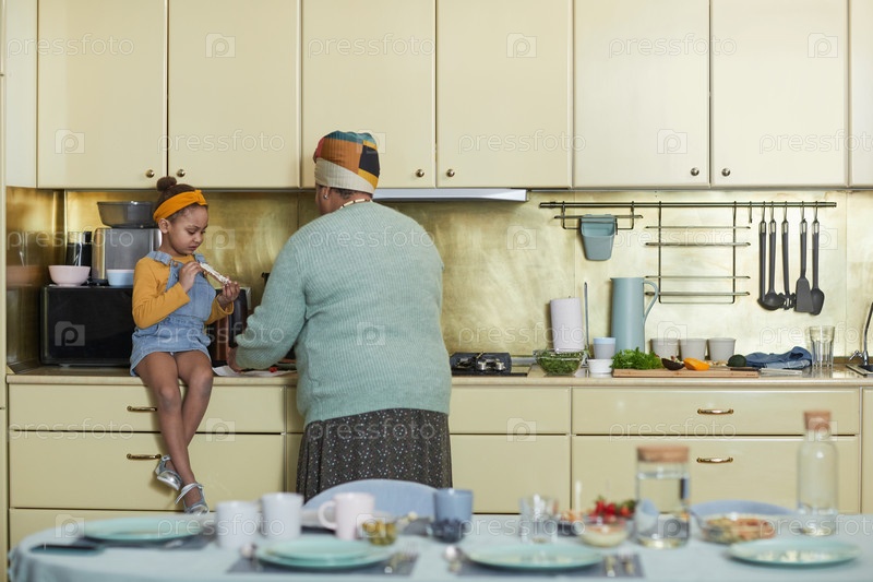 Маленькая афроамериканская девочка помогает на кухне