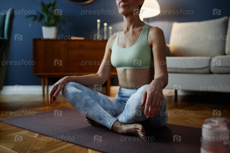 Медитация на йога-матке в уютной обстановке гостиной