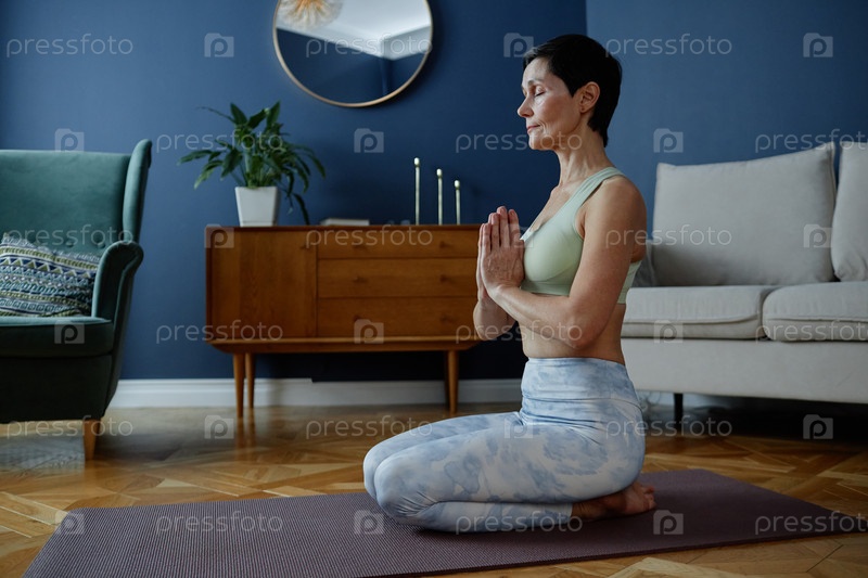 Практика медитации йоги в современной обстановке гостиной