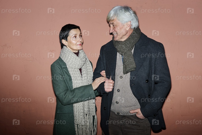 Пожилая пара улыбается и держит друг друга за руки