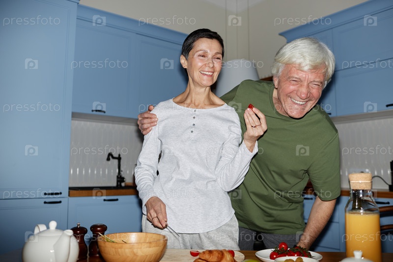 Портрет двух пожилых людей, наслаждающихся завтраком вместе