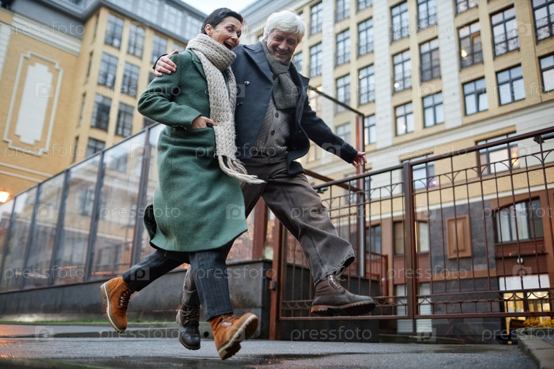 Наслаждаясь городской прогулкой в теплых зимних пальто вместе