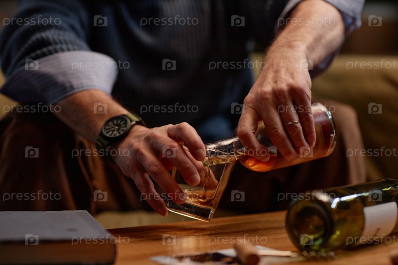 Налейте виски в стакан с расслабленной атмосферой на заднем плане