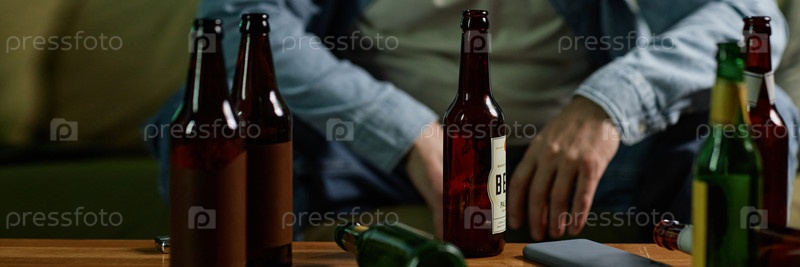 Header Image of Man Sitting at Table with Beer Bottles in Casual Indoor Setting Человек, сидящий за столом с бутылками пива в непринужденной внутренней обстановке