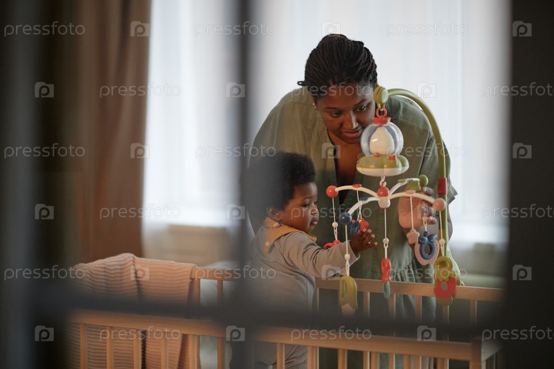 Черная мать и девочка играют с мобильными телефонами в спальне