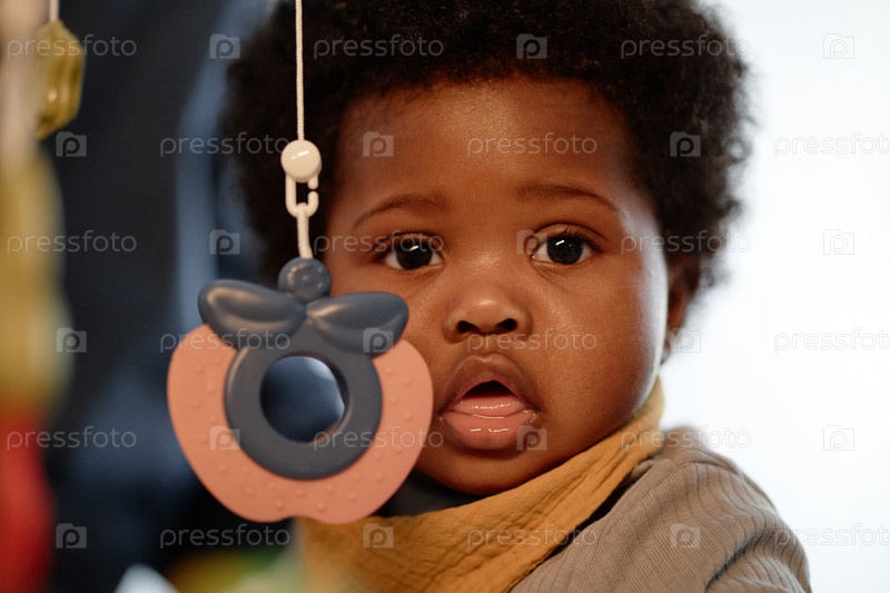 Портрет любопытной чернокожей девочки, захваченной с милыми мобильными телефонами в спальне
