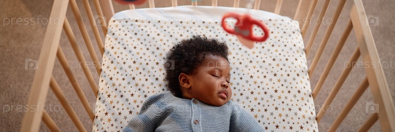 Header Image of Черная девочка-ребенок спит в колыбели внутри