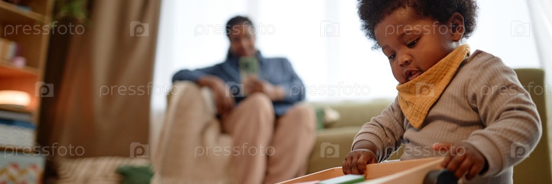 Header Image of Черная девочка играет с игрушками на полу дома