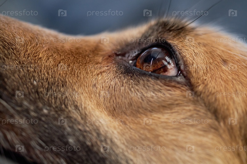 Коричневые глаза милых собак смешанной породы смотрят на хозяина с нежным взглядом