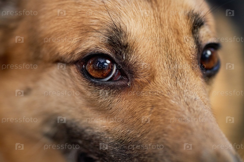 Милая собака-монгрел, смотрящая на камеру с нежными коричневыми глазами