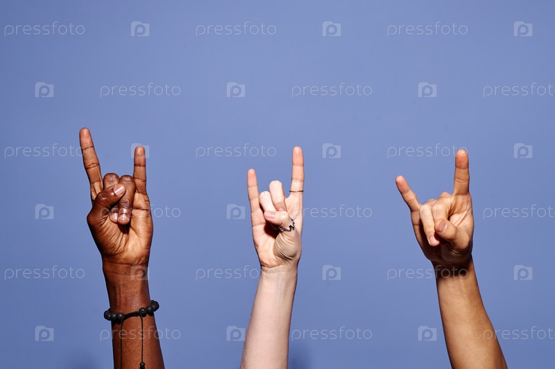 Выражая единство с поднятым жестом руки
