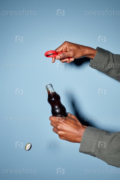 Открытие бутылки соды с красным открывателем бутылок