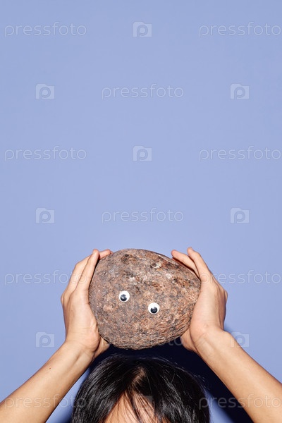 Держащий рок с гуглиными глазами на фоне неба
