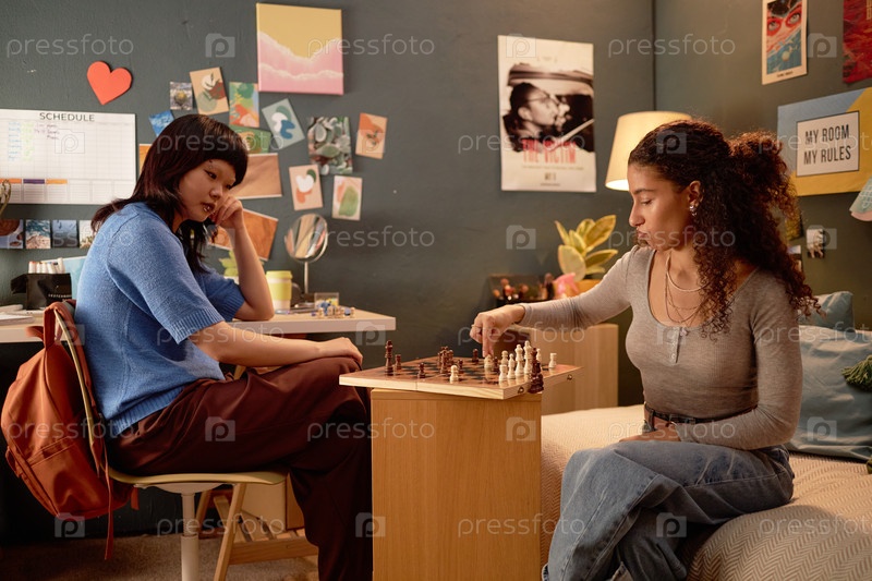 Участие в шахматной игре внутри уютной, расслабленной обстановки спальни