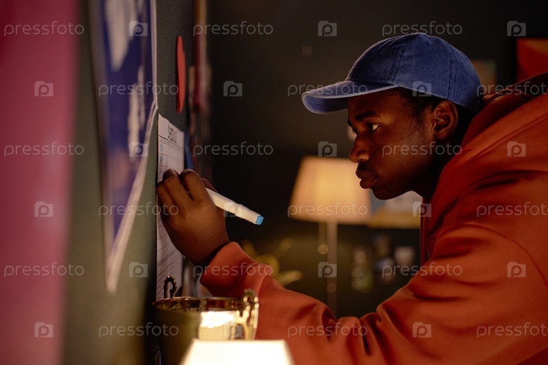 Сосредоточенный человек пишет на стене с капюшоном назад