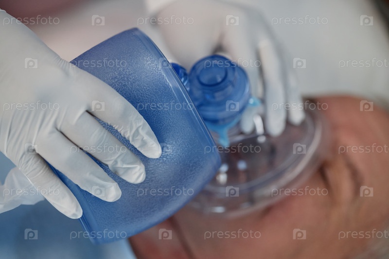 Введение кислорода с помощью медицинской маски и перчаток