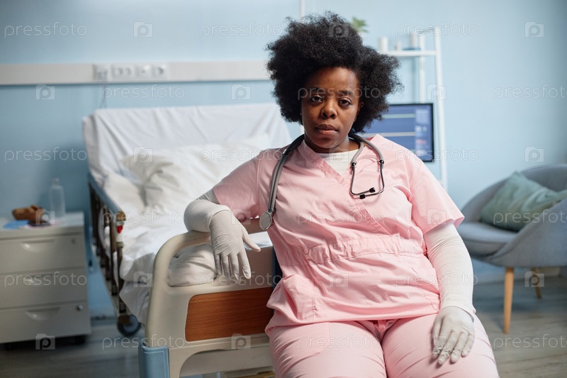 Портрет медсестры, сидящей в больничной комнате