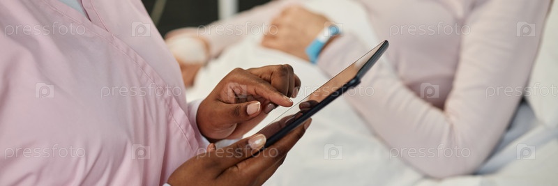 Header Image of Медицинский эксперт, использующий планшетное устройство для ухода за пациентом