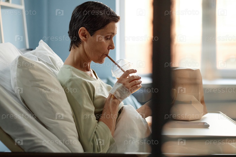 Восстанавливающийся пациент отдыхает в больничной постели без выражения