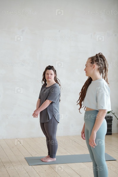 Инвалидная женщина слушает фитнес-тренера во время упражнений