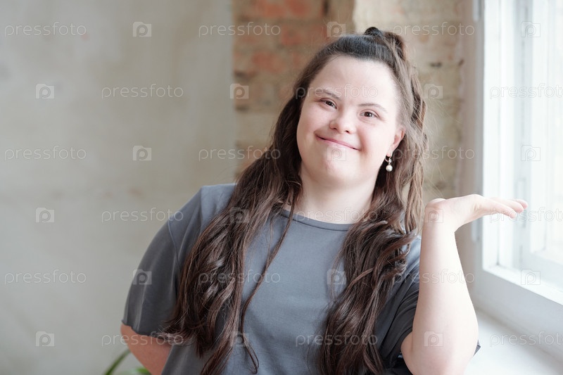 Дружелюбная молодая брюнетка смотрит на тебя с улыбкой