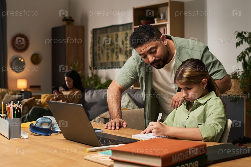 Сосредоточение внимания на домашней работе с поддерживающим отцом в классной обстановке