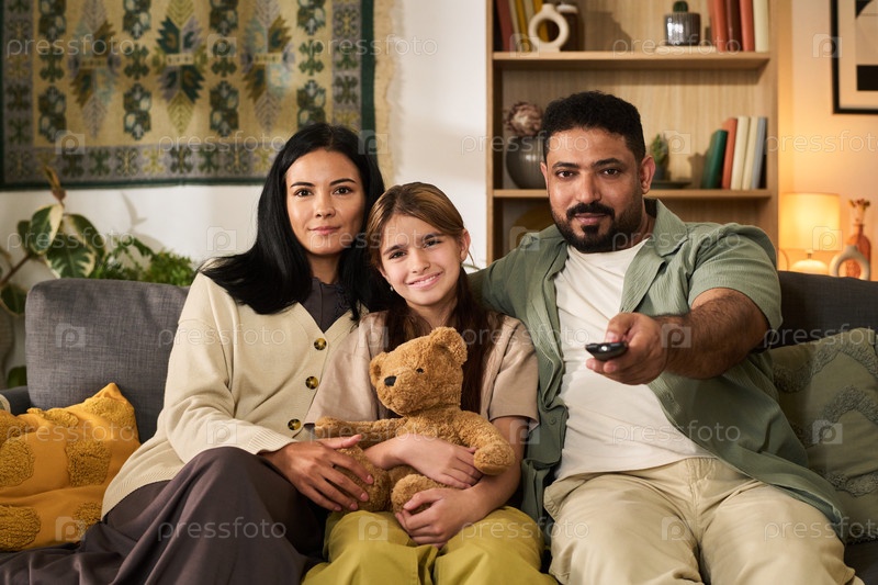 Расслабление семейного времени во время просмотра телевизора дома вместе